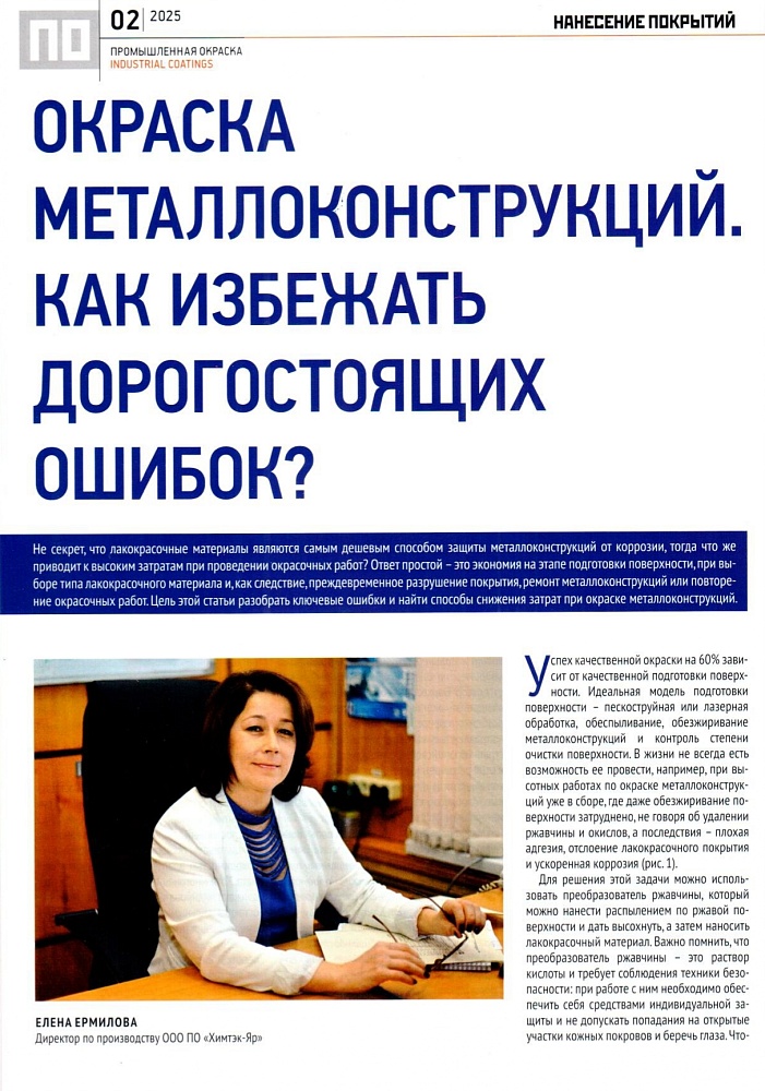 Особое внимание уделяется грамотному подбору лакокрасочной системы. Для решения задач антикоррозионной защиты металлоконструкций специалисты компании «Химтэк-Яр» разработали и внедрили линейку промышленных лакокрасочных материалов серии «Ярфаст».