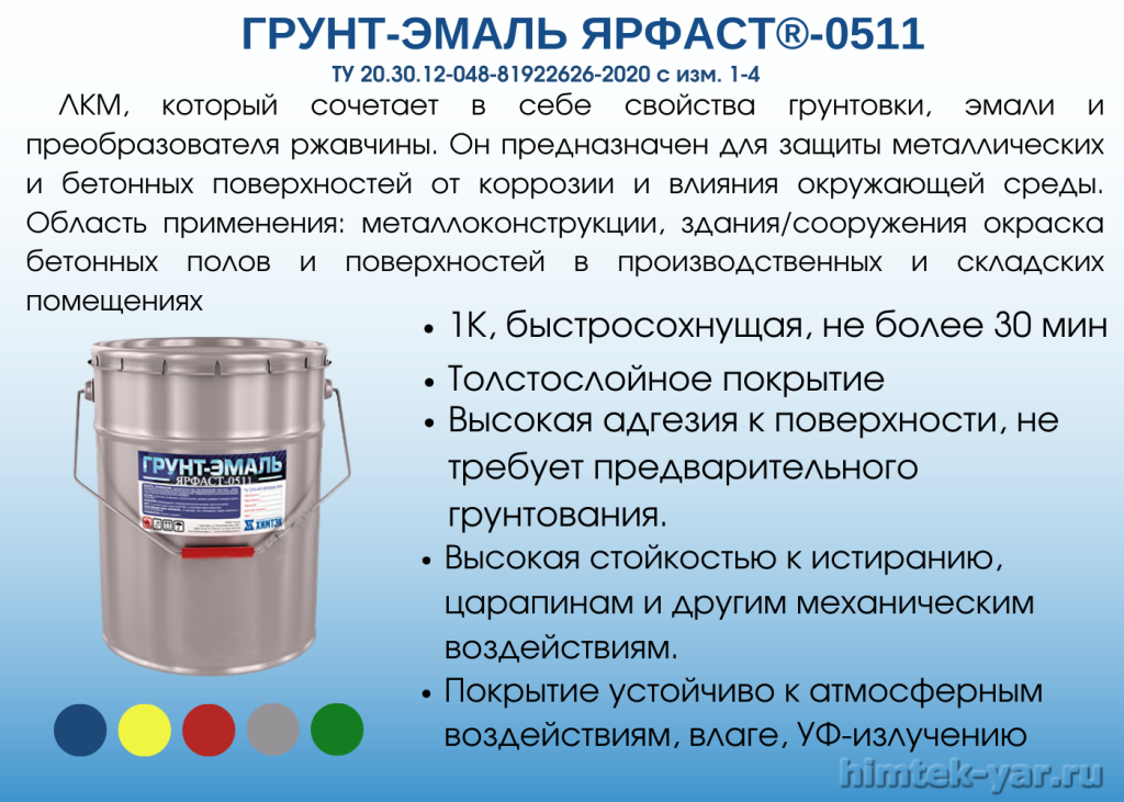 ГРУНТ-ЭМАЛЬ ЯРФАСТ-0511 ДЛЯ МЕТАЛЛОКОНСТРУКЦИЙ И ЖБИ